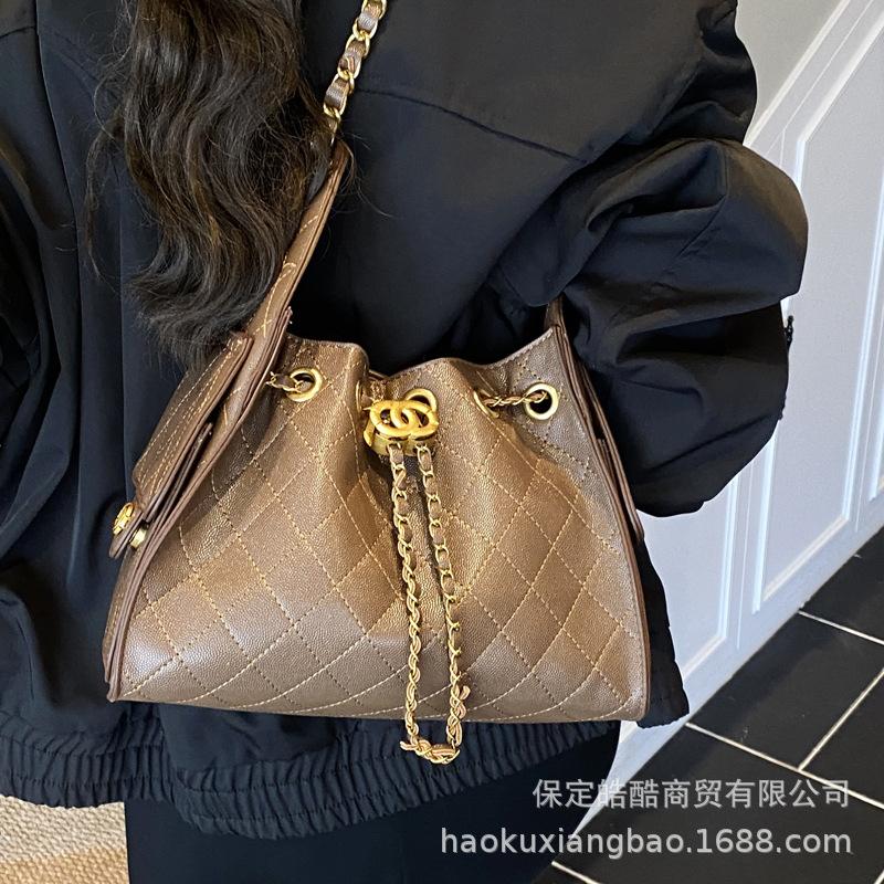 Сумка-цепочка ромбовидной формы женская 2025 новая сумка-мессенджер осень-зима нишевый дизайн популярная плечевая сумка-ведро в этом году