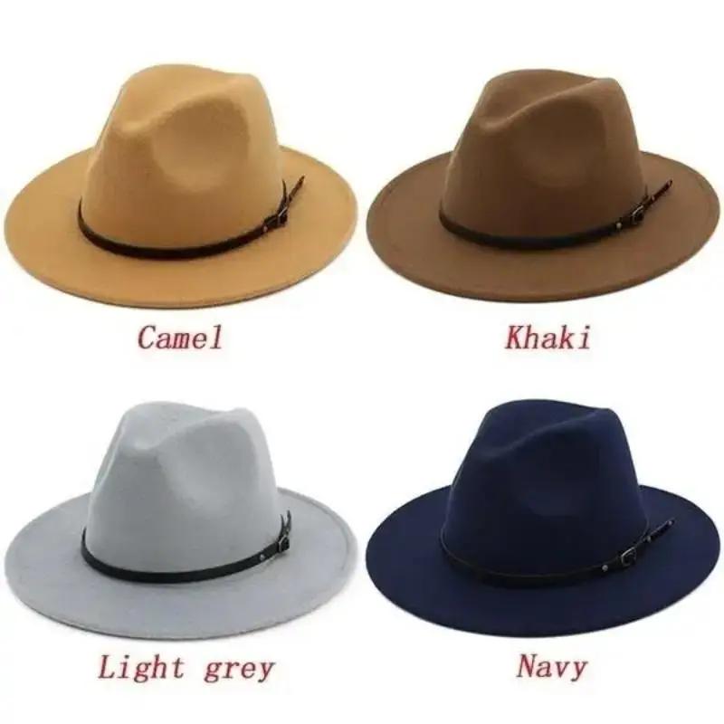 Мужская мода Простая однотонная винтажная шляпа с широкими полями Церковная вечеринка Фетровая джазовая шляпа Модные дорожные шляпы Женские аксессуары Подарки