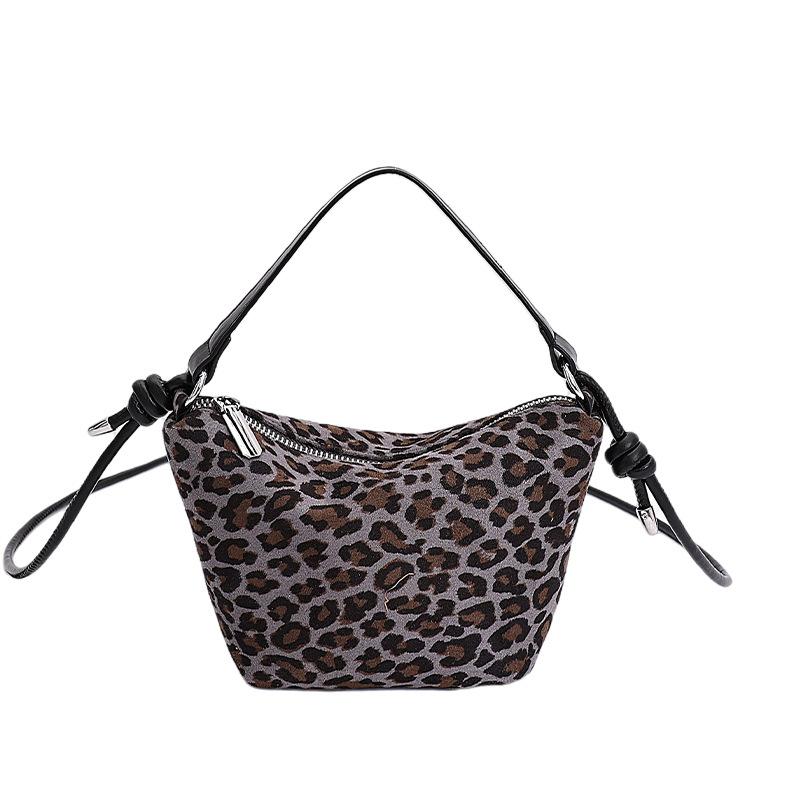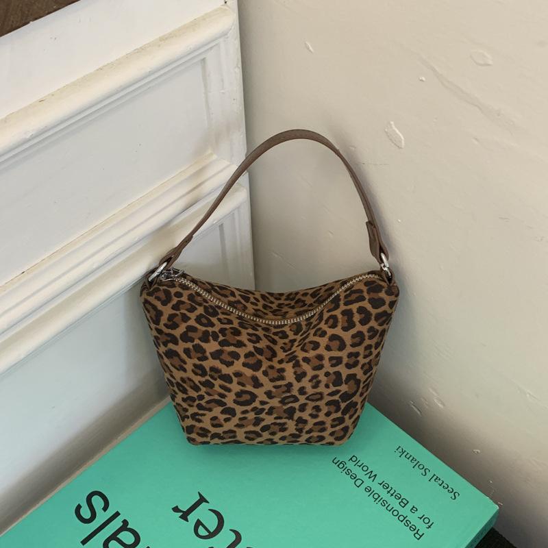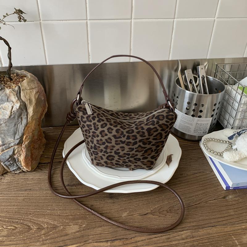 Ретро леопардовый принт маленькая сумка женская осень и зима универсальная 2025 новая популярная сумка через плечо мессенджер повседневная корейская сумка-ведро