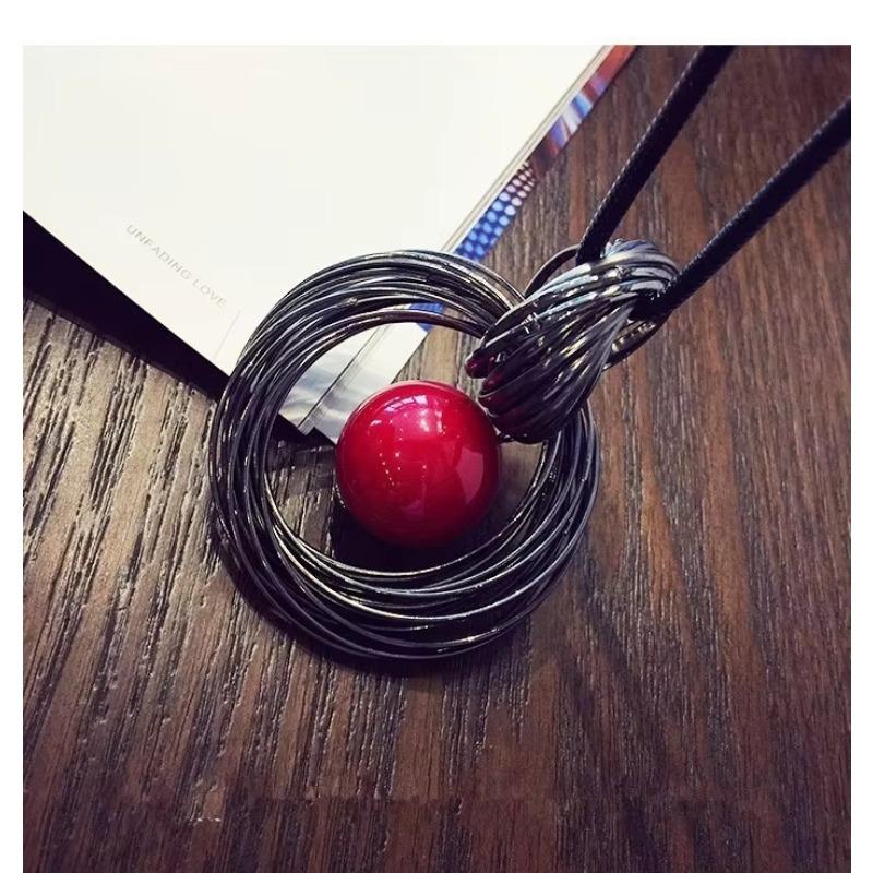 Красный Белый Жемчужный Шар Подвеска Длинные Ожерелья Новые Круги Имитация Женщины Черная Цепочка Макси Ожерелье Модная Бижутерия Оптом Подарок
