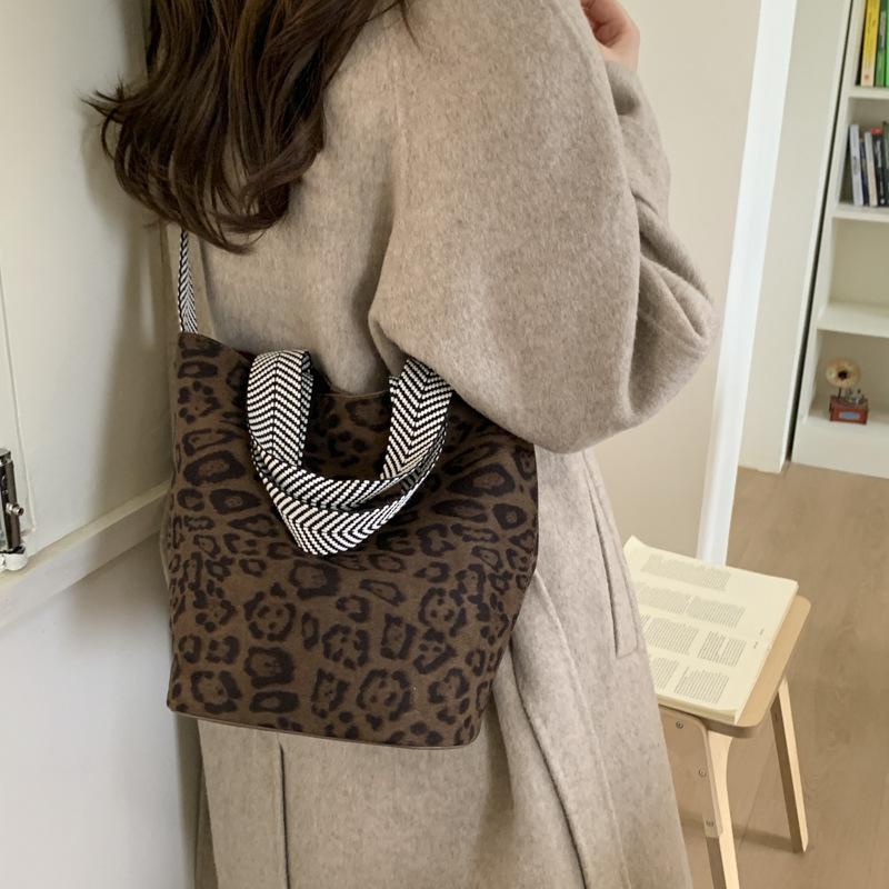 Сумка с леопардовым принтом женская 2025 новая высококачественная замшевая сумка с текстурой, большая вместительная на плечо, кроссбоди, сумка-ведро