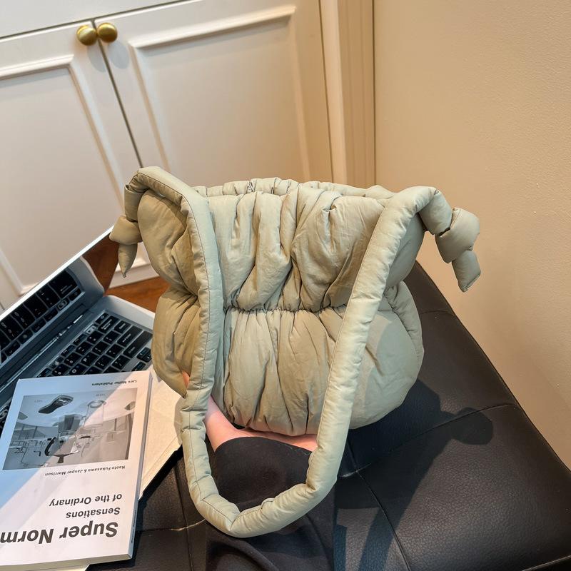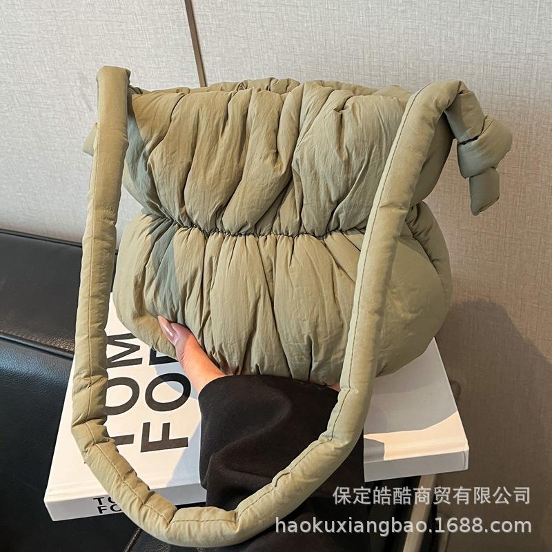 Мягкая пуховая хлопковая сумка для одежды женская 2025 осень и зима новая большая вместительная сумка из нейлоновой ткани на плечо кроссбоди сумка-ведро