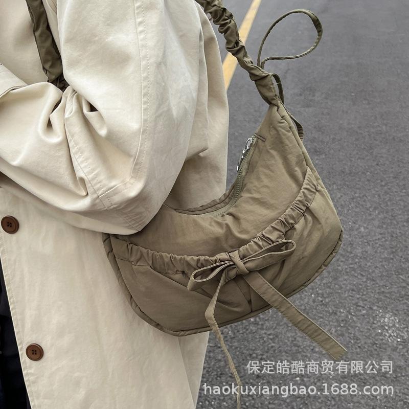 Сумка-пельмень 2025 осень и зима нишевая универсальная сумка-облако плиссированная тканевая сумка женская легкая одноплечевая сумка-мессенджер сумка-пельмень тренд