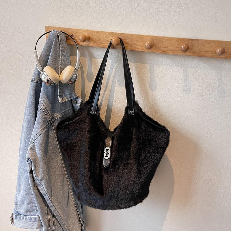 Ретро пушистая сумка женская большая вместимость 2025 новая осенне-зимняя повседневная плюшевая сумка через плечо студенческая сумка-тоут для занятий
