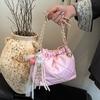 Летняя маленькая сумка на цепочке с ромбовидной вышивкой, женская, новая 2025 года, в зарубежном стиле, универсальная сумка-мессенджер на цепочке, модная супер-хитовая сумка-ведро