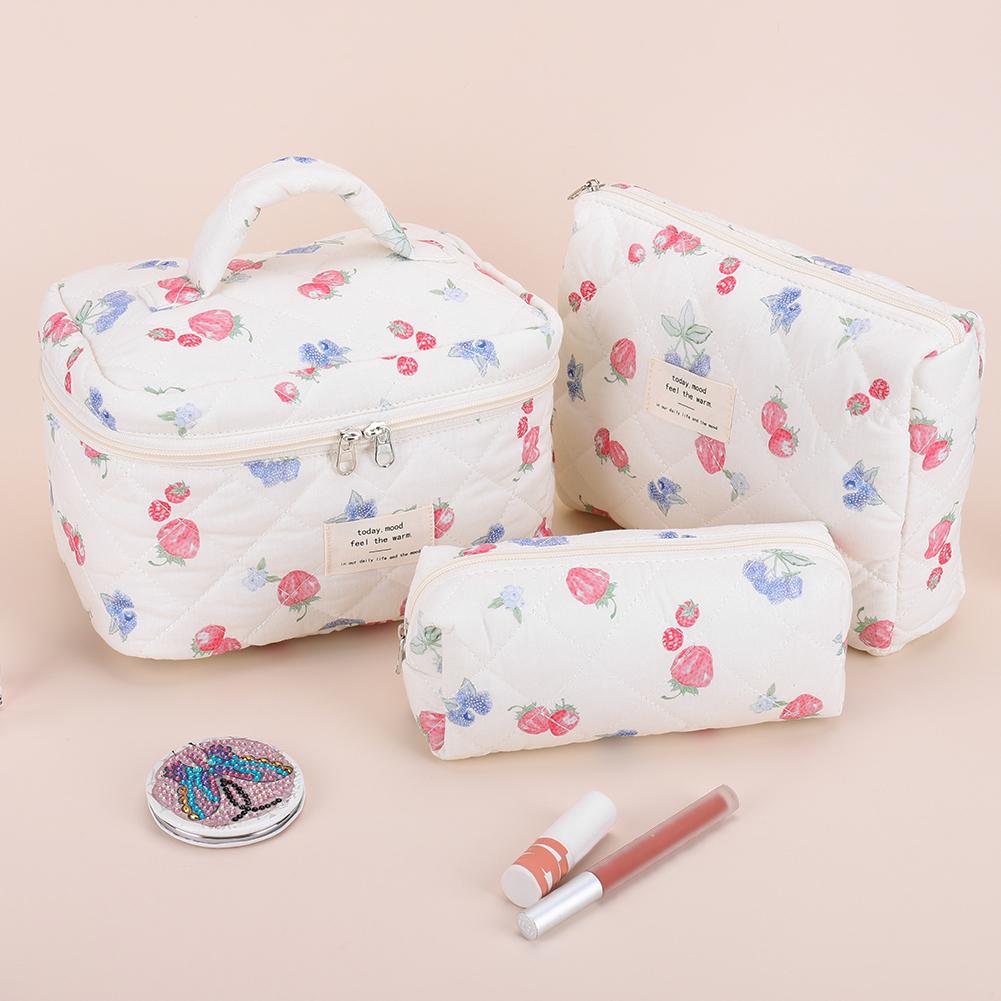 3 шт. Милая стеганая косметичка большой емкости, очаровательная мягкая косметичка с принтом клубники, дорожная сумка для душа и ванной