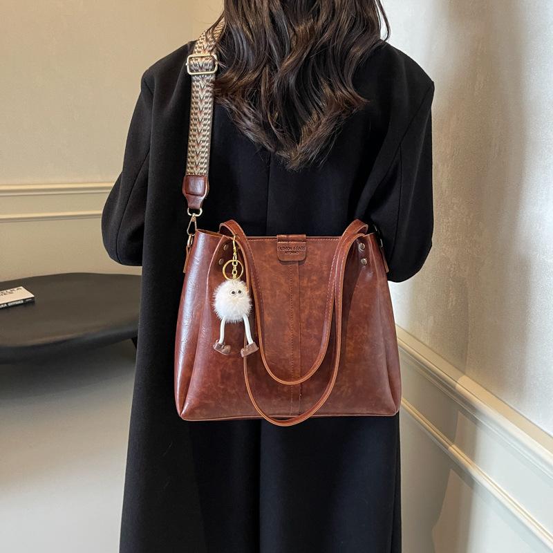 Ретро сумка женская сумочка 2025 осень и зима новая универсальная широкая плечевой ремень сумка-мессенджер большая вместимость сумка-тоут