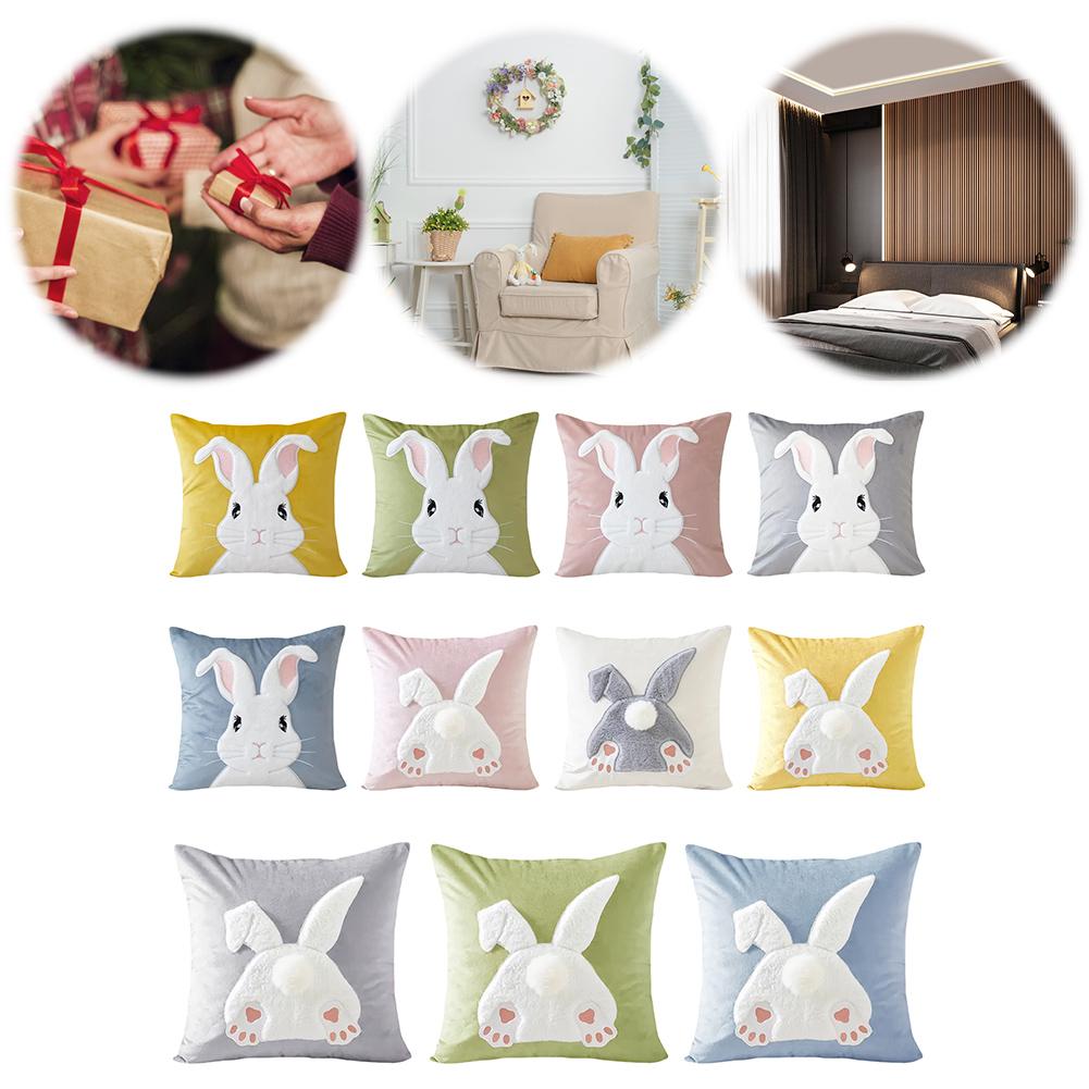 Easter Rabbits Throw Pillow Cover 45x45cm Rabbit Pattern Decorative Throw Pillowcase Plush Rabbit Pillowcase for Home Decor
