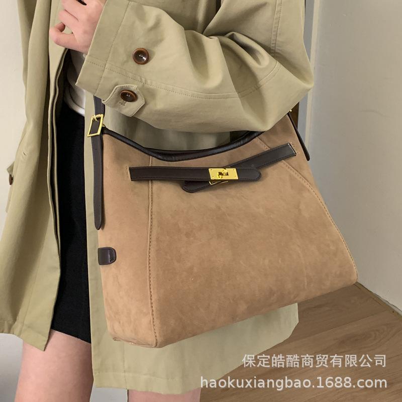 Повседневная ретро замшевая сумка женская 2025 новая универсальная сумка-мессенджер для поездок на работу модная и простая наплечная сумка-ведро