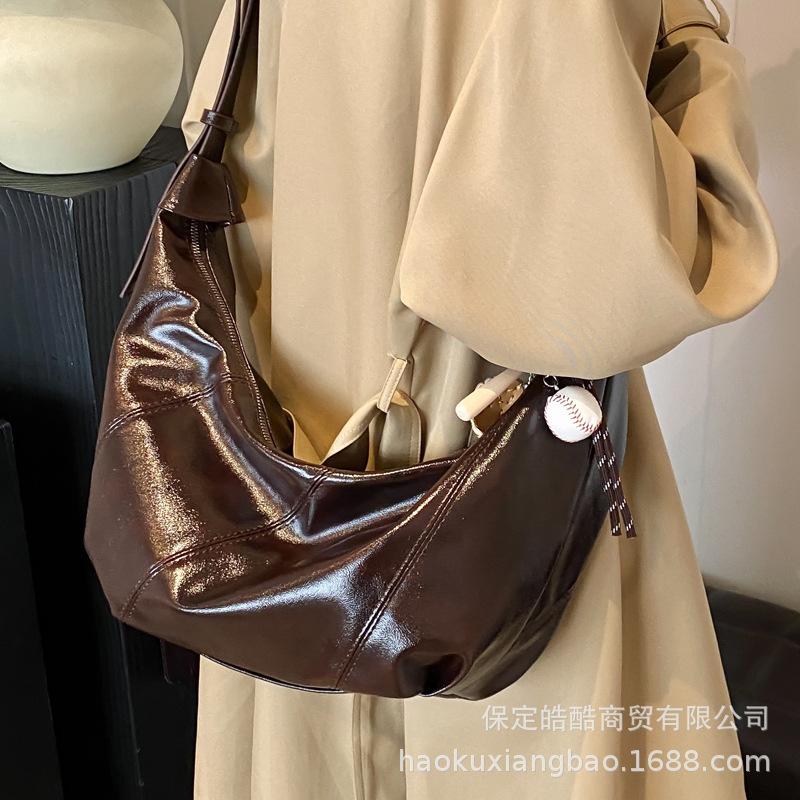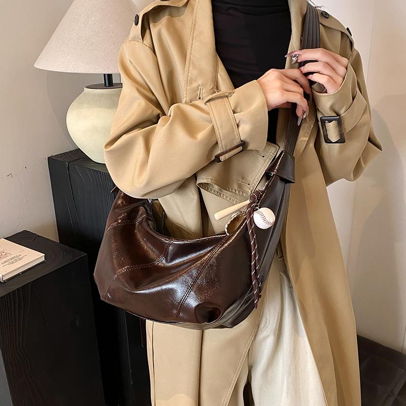 Сумка большой вместимости женская 2025 новая высококачественная текстура нишевая осенне-зимняя универсальная на одно плечо сумка-мессенджер широкополосная сумка-пельмень