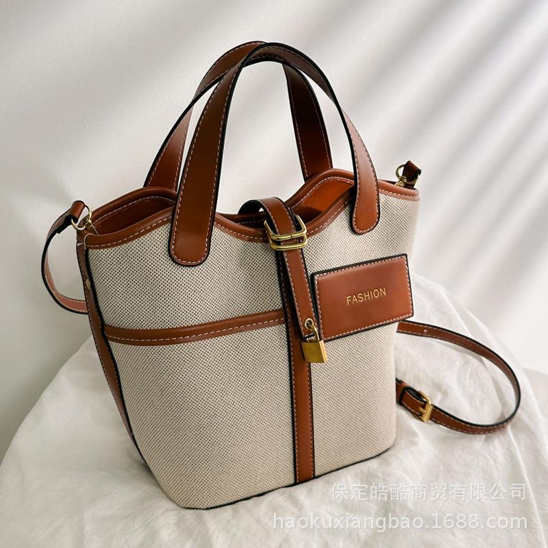 Холщовая нишевая контрастная цветная женская сумка 2025 лето новая корейская мода сумка через плечо сумка-мессенджер универсальная сумка-ведро