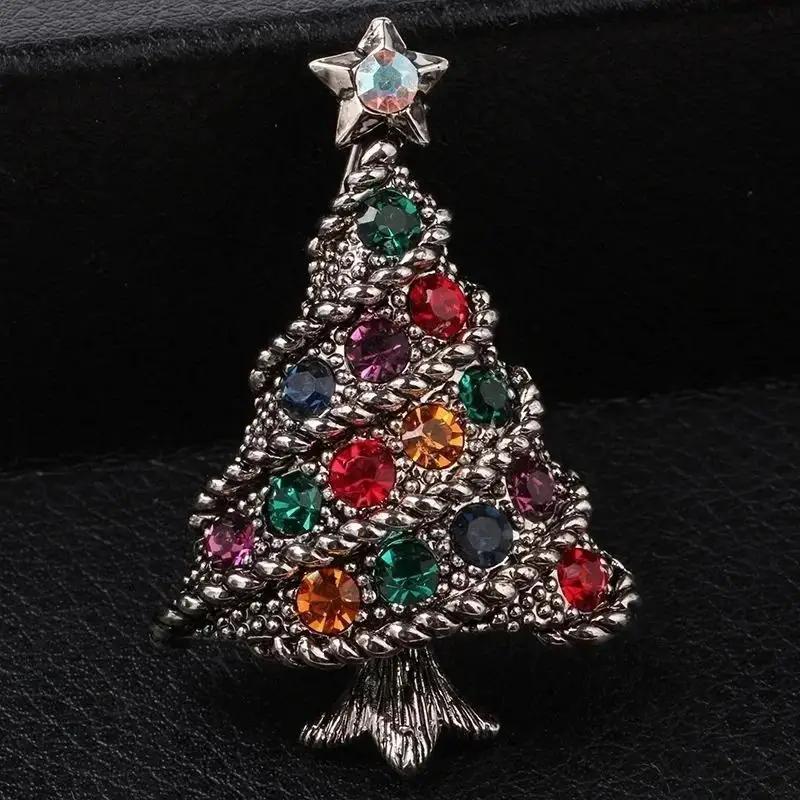 Винтажная брошь в виде рождественской елки с бриллиантами, сплав, стразы, аксессуары, женская праздничная брошь, ювелирное изделие