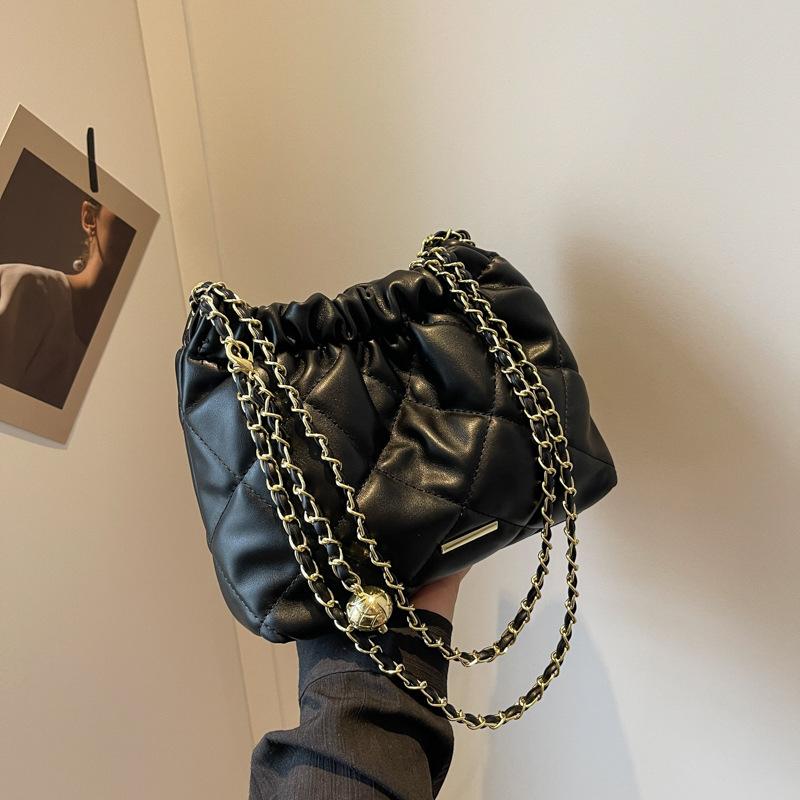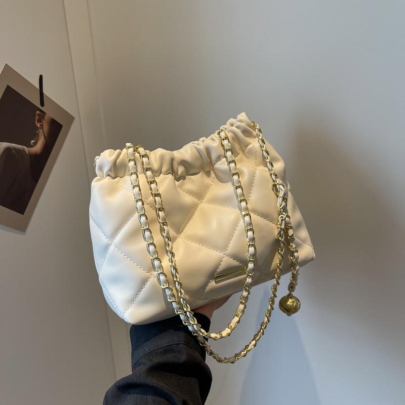 Популярная сумка этого года 2025 новая однотонная текстурная сумка на плечо с высоким чувством универсальная сумка-цепочка с ромбами сумка-ведро