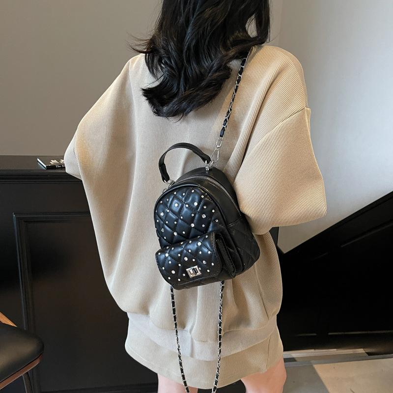 Новый мини-рюкзак для поездок на работу, женский, лето 2025, трендовый, в стиле маленького черного платья, с ромбовидной цепочкой, простой повседневный рюкзак на плечо