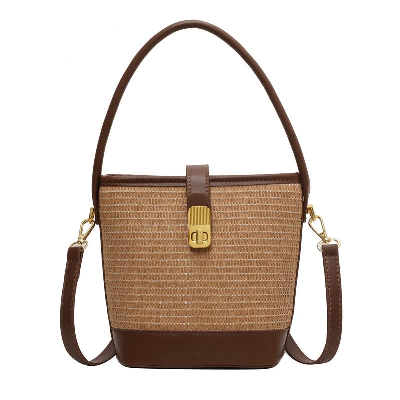 Новая модная портативная плетеная сумка-ведро женская 2025 весна и лето высококачественная текстурированная соломенная сумка сумка через плечо
