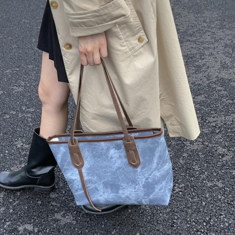 Вместительная сумка-багет контрастного цвета женская 2025 новая модная и универсальная сумка через плечо повседневная сумка-тоут для поездок на работу