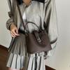 Премиальная текстура портативная сумка-ведро женская 2025 осень и зима новая сумка под мышку универсальная для поездок на работу с узором личи сумка-мессенджер