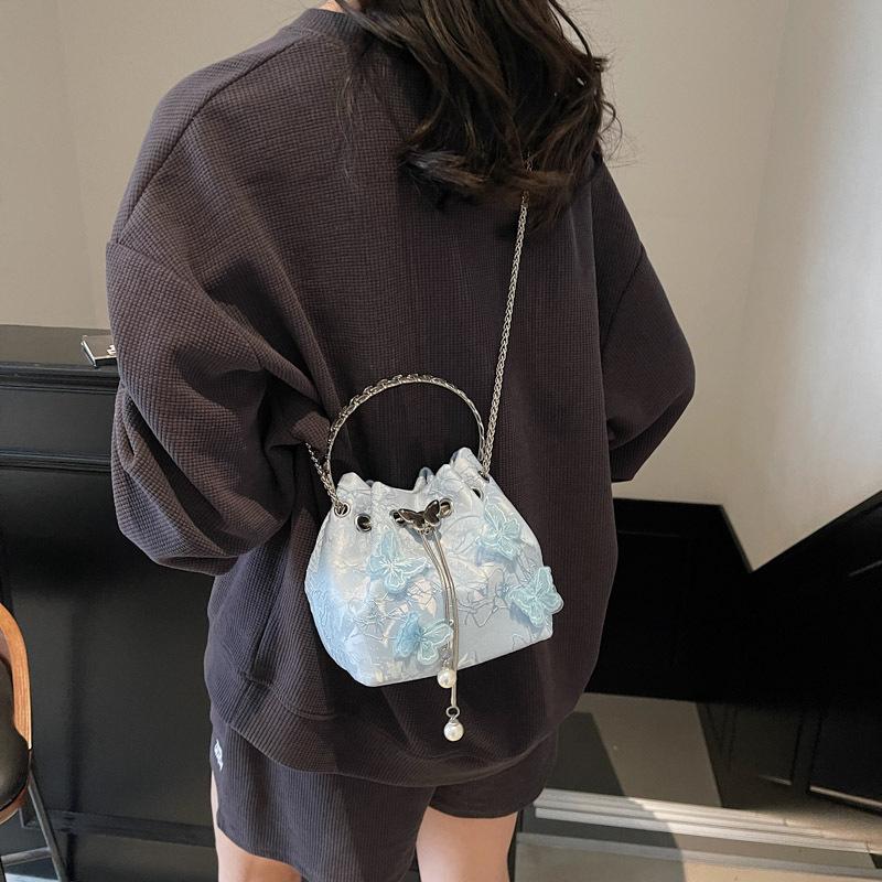 Новая портативная сумка-ведро на цепочке женская 2025 весна-лето высококлассное чувство тренда национальный стиль вышивка нишевая на плечо мессенджер