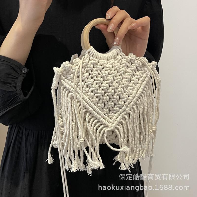 Bohemian fringed portable small bag women's 2025 new spring and summer hollow shoulder woven bag crossbody straw bag