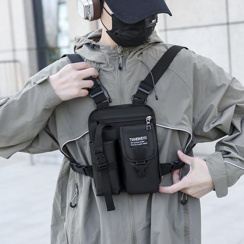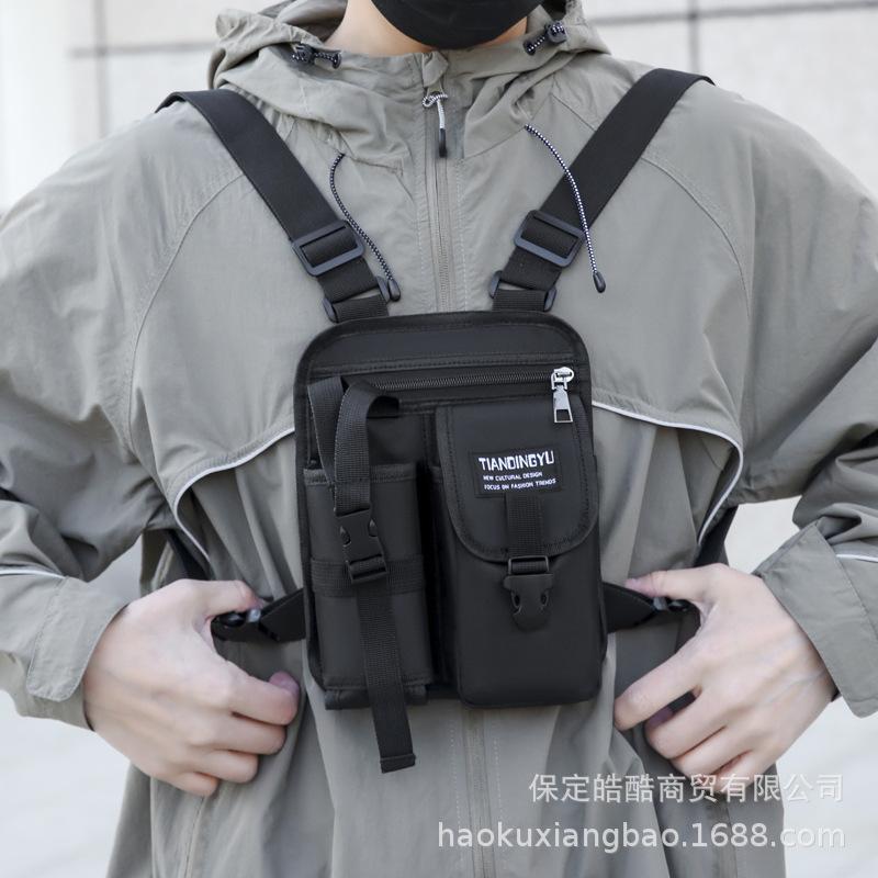 Мужская модная брендовая нагрудная сумка с двойным плечевым ремнем, сумка-жилет, функциональная сумка-инструмент в стиле ветра, модная уличная многофункциональная тактическая сумка-жилет