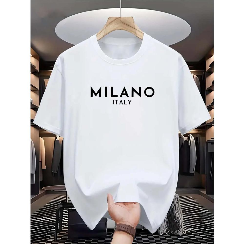 Летняя мужская футболка свободного покроя из 100% чистого хлопка MILANO ITALY с круглым вырезом и короткими рукавами