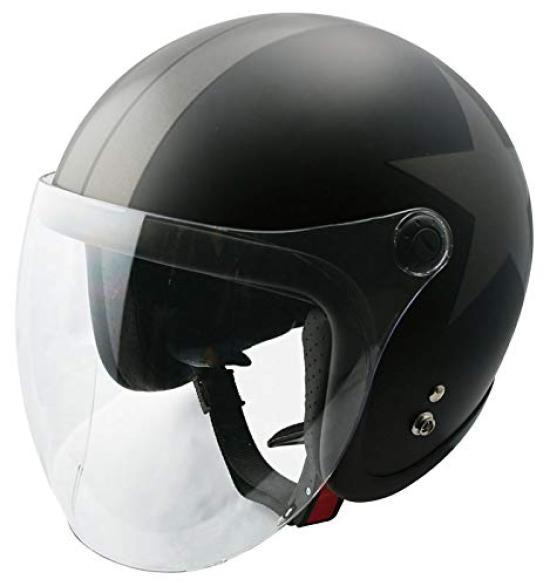 Speed Pit TNK Industrial Small Jet Helmet with Half Matte Free Size 51267 JL-65SR Shield, Black/Gunmetal/Star, (58-59cm),