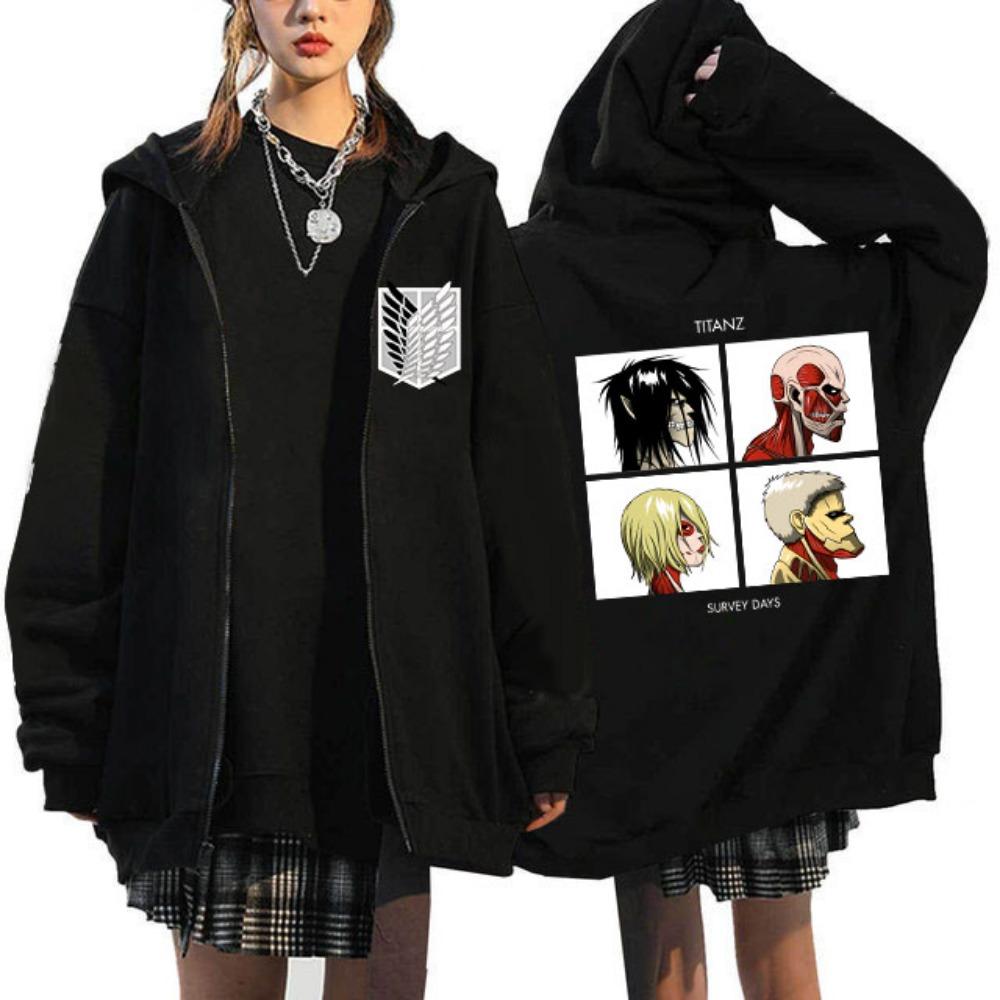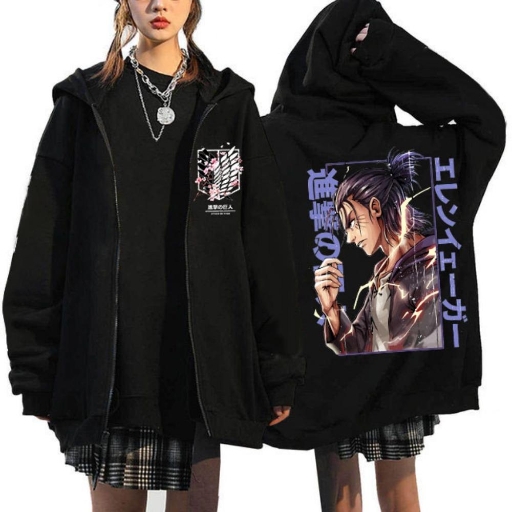 Аниме Атака Титанов Финальный Сезон Толстовка на молнии Shingeki No Kyojin Y2k Куртки на молнии Толстовки Эрен Йегер Манга Уличная одежда