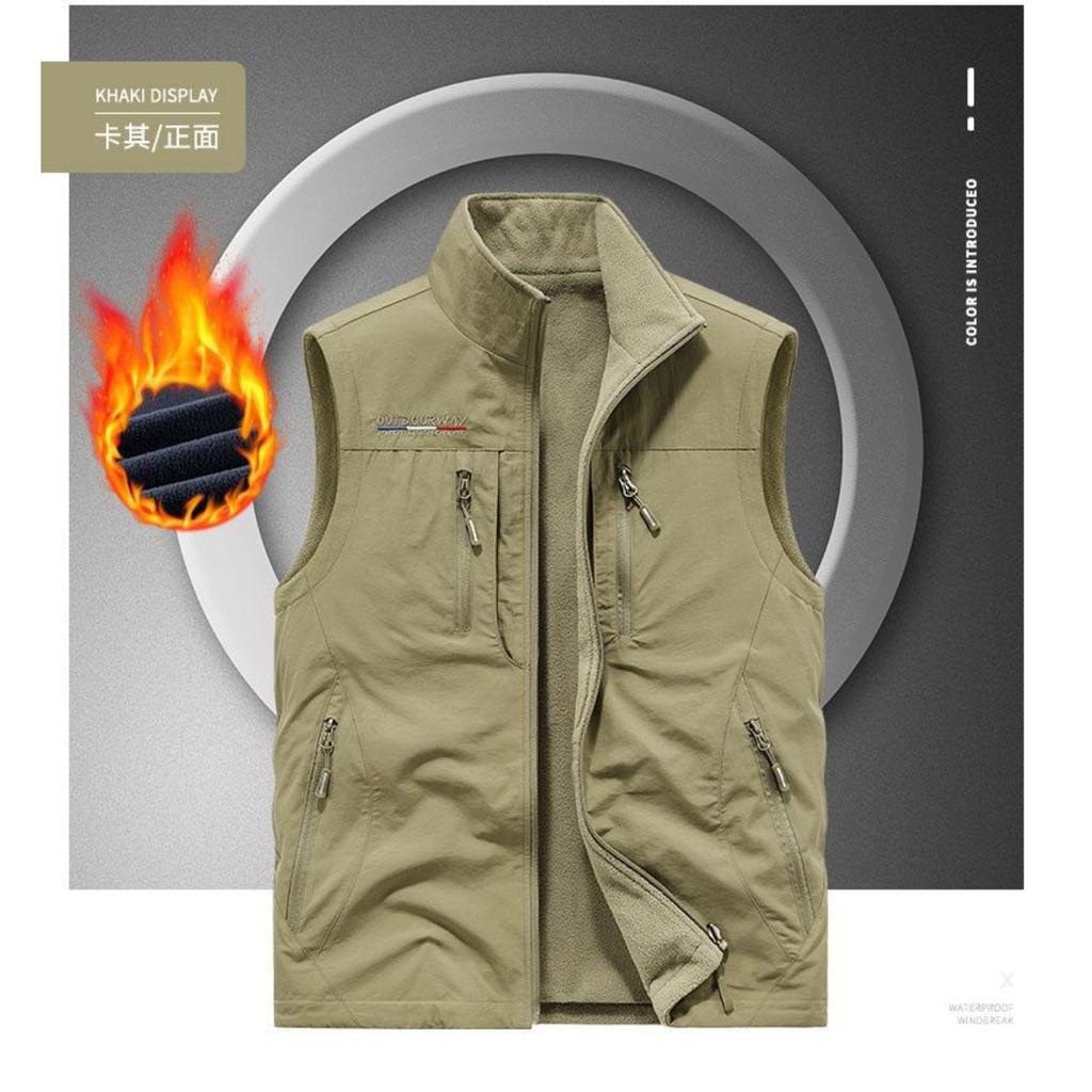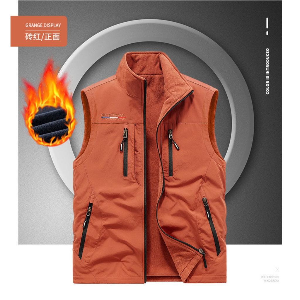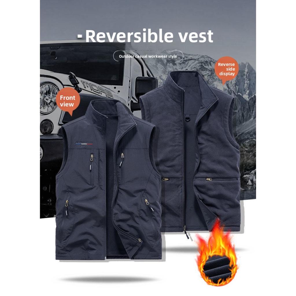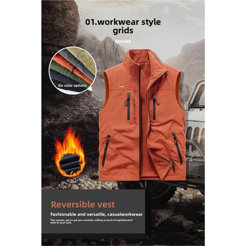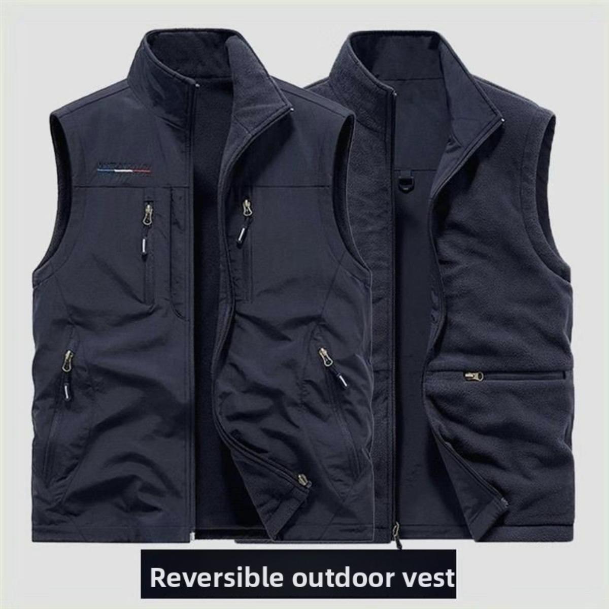 Карманный, Осенне-зимний Двусторонний Мужской Флисовый Жилет для Активного Отдыха, Флисовый Жилет, Плечи с Флисом и Толстый Жилет