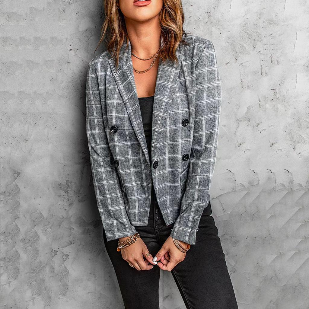 Женский блейзер в клетку, повседневная офисная куртка на пуговицах с лацканами с вырезом, универсальное пальто для работы и ежедневных поездок