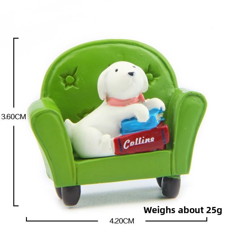Смоляная фигурка Собака Орнамент с зеленым диваном для реквизита для съемок и подарка подросткам