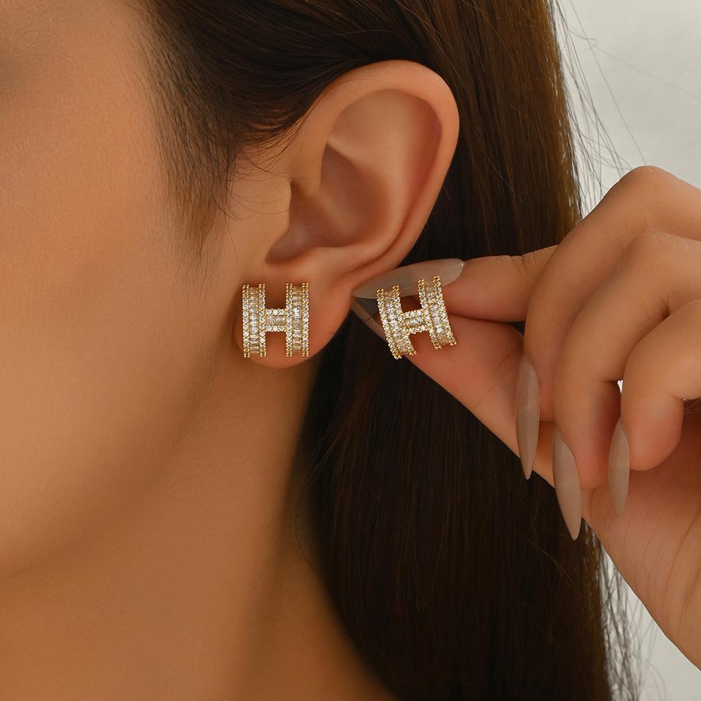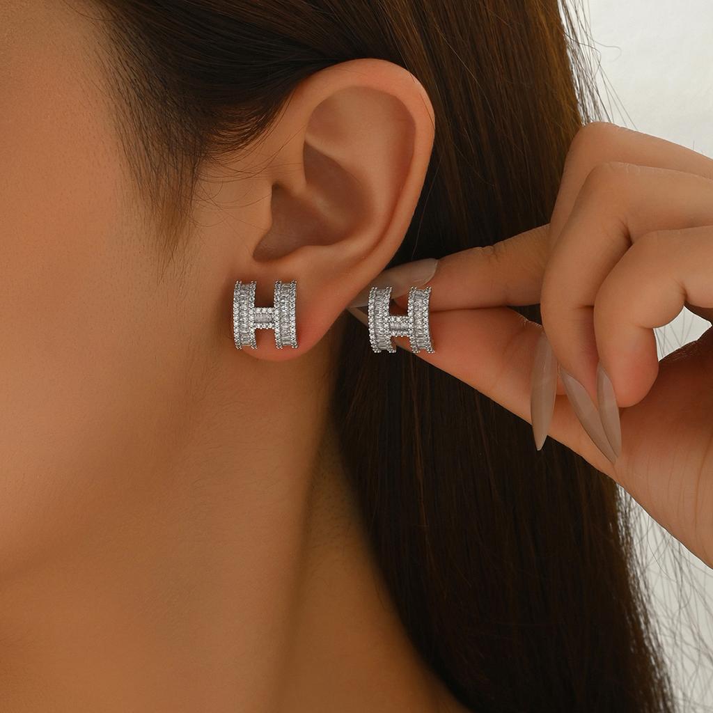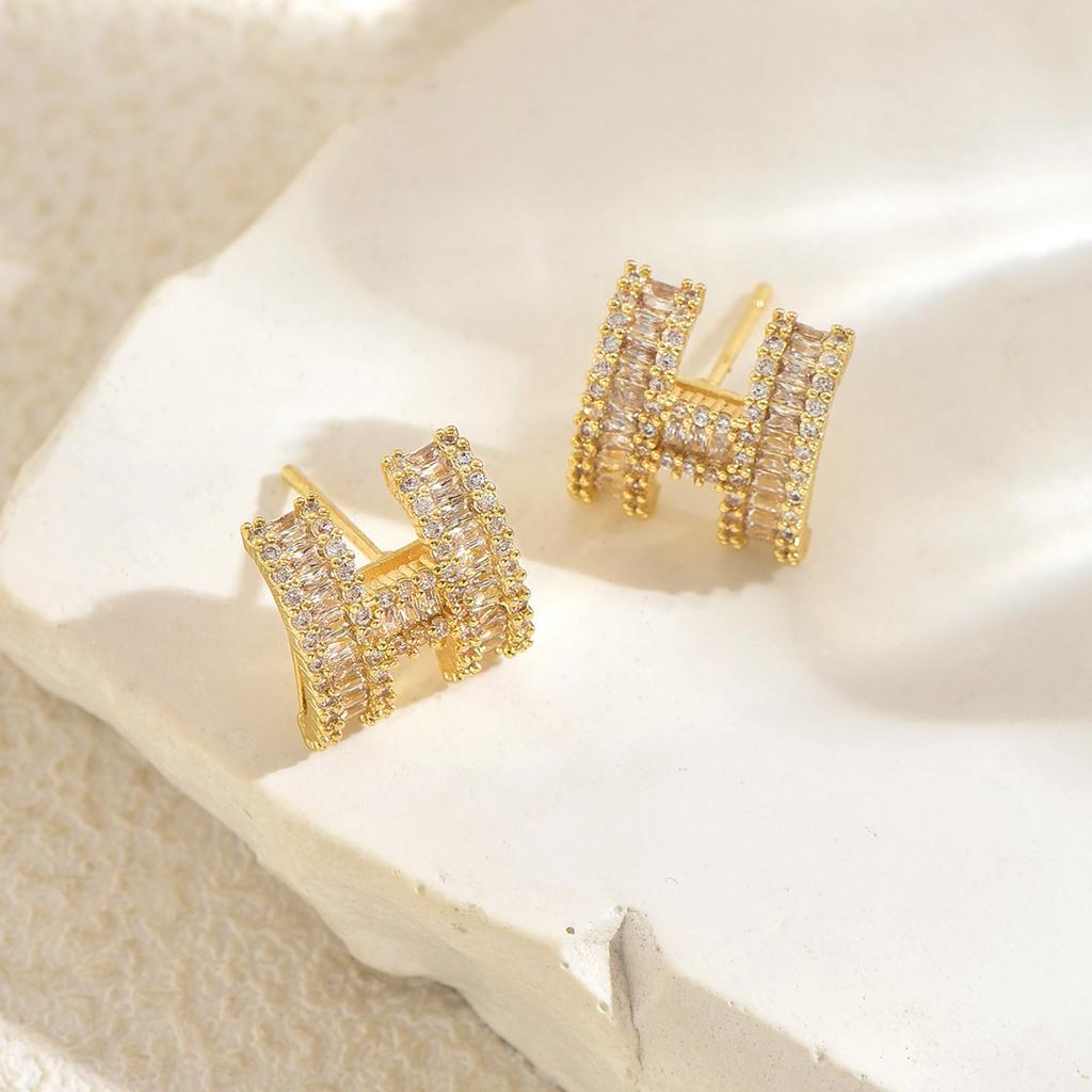 Модные женские серьги в стиле легкой роскоши, геометрический дизайн с буквой H, инкрустированные цирконами, серьги-пусеты, универсальные нишевые украшения для ушей