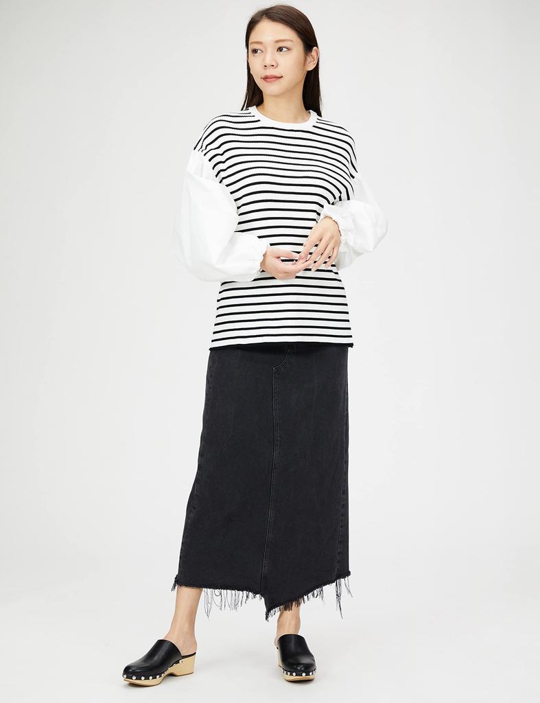 Mira Owen Tuck Sleeve Docking Knit BORDER 0 Women's Pullover, 09WNT224217,