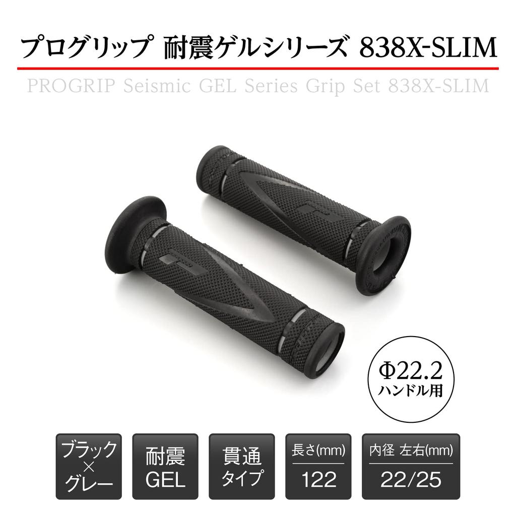 Daytona PROGRIP Motorcycle for Handlebar 98156 Grips, 122mm, 22.2mm Diameter, Anti-Vibration Gel, End-Penetration, X-SLIM Type, 838, Gray,