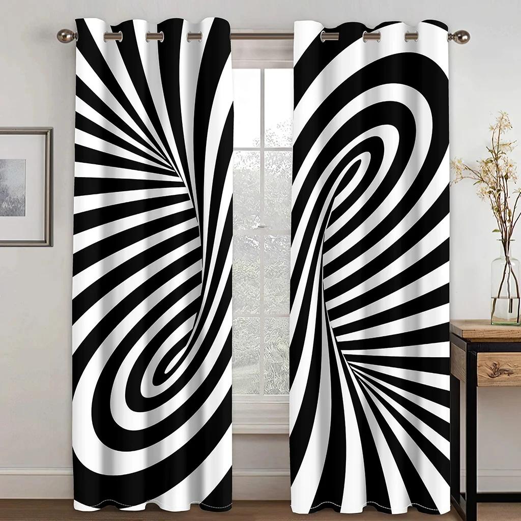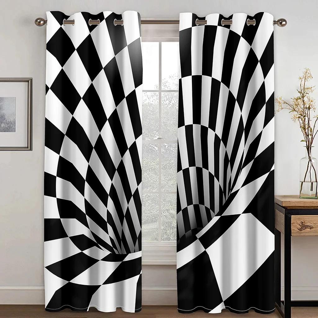 2Panels Dizzy Illusion Черно-белые решетчатые абстрактные шторы для окон для гостиной, спальни, кухни, домашнего декора комнаты