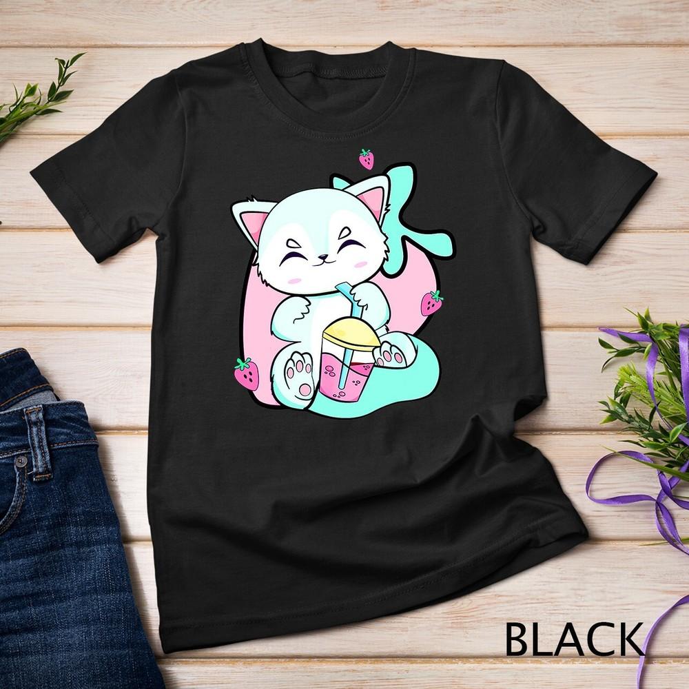Cute Arctic Fox Drinks Strawberry Milk And Boba Bubble Tea Unisex T-shirt — купить товар онлайн с бесплатной доставкой по всему миру!