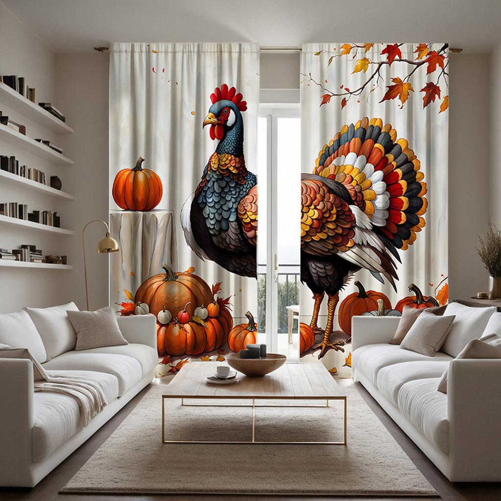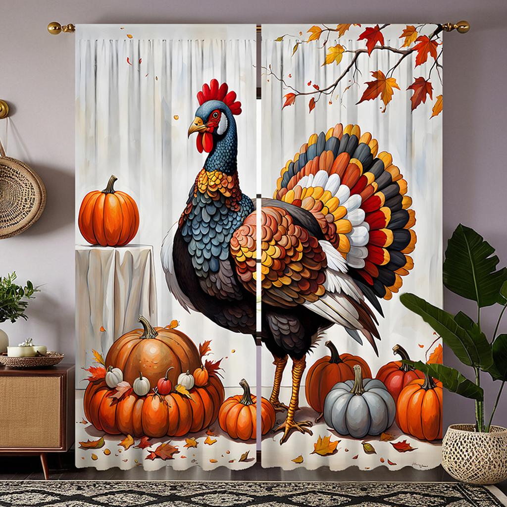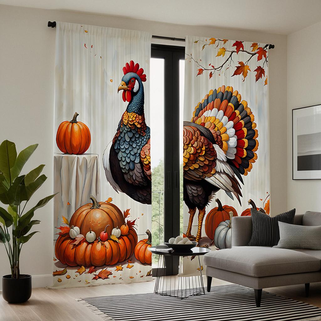 2 шт. HD Праздник урожая Петух Тыква декоративная занавеска Белый галстук цифровая печать занавеска Украшение дома стиль Украшенный