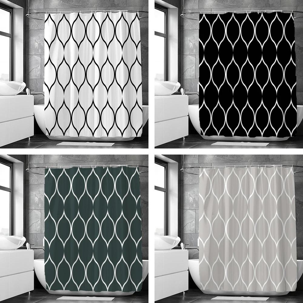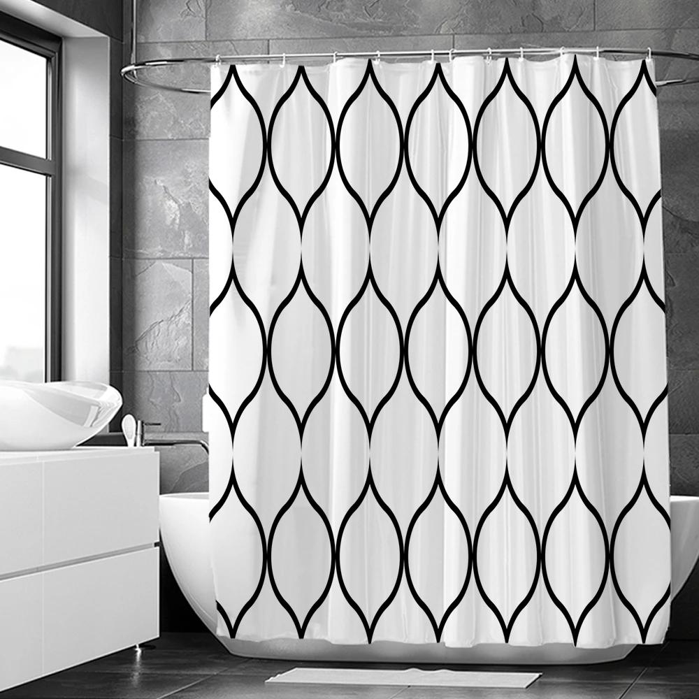 Черно-белые геометрические узоры занавески для душа водонепроницаемая ткань занавеска для ванной с крючками 180x180 см экран для унитаза