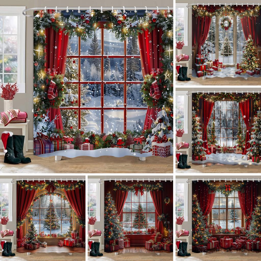 Рождественские украшения Душевая занавеска Зимняя снежная сцена Рождественская елка Рождественские подарки Полиэстер Душевая занавеска Декор для ванной комнаты