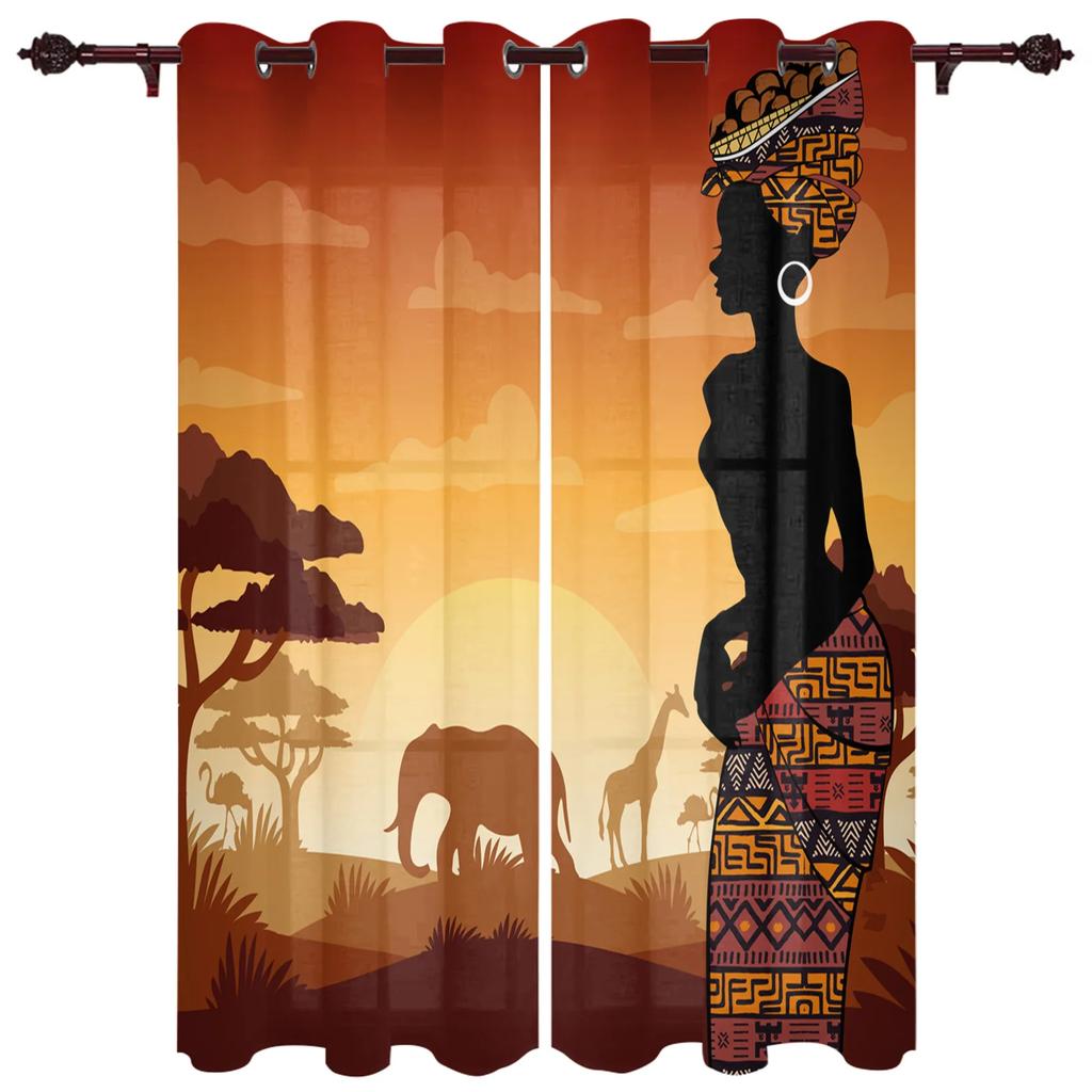 Африканская женщина Жираф Слон Силуэты Шторы для Спальни Гостиной Драпировки Кухня Детская Комната Оконная Штора Домашний Декор