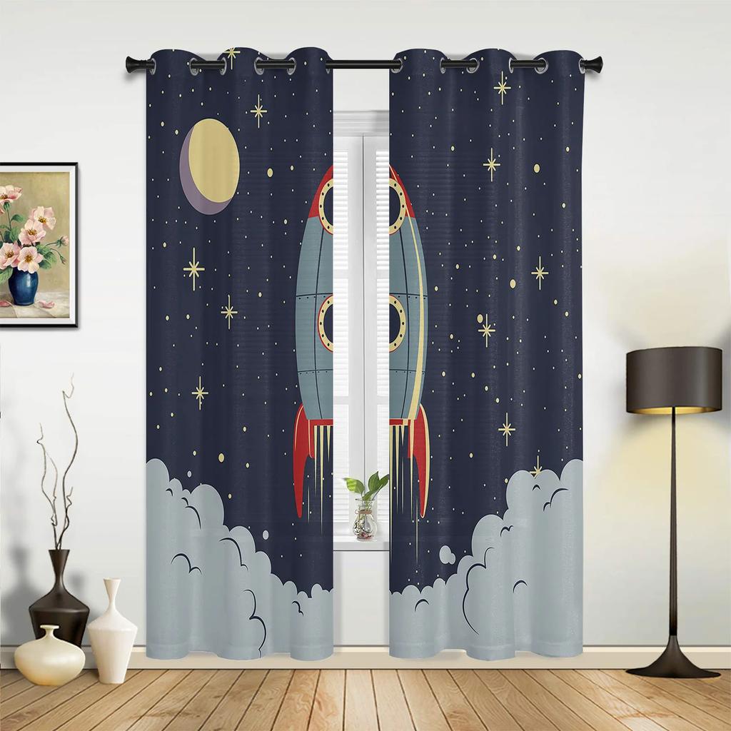 Космические шторы с ракетами для спальни, гостиной, драпировки для кухни, занавеска для окна в детскую комнату, современный домашний декор