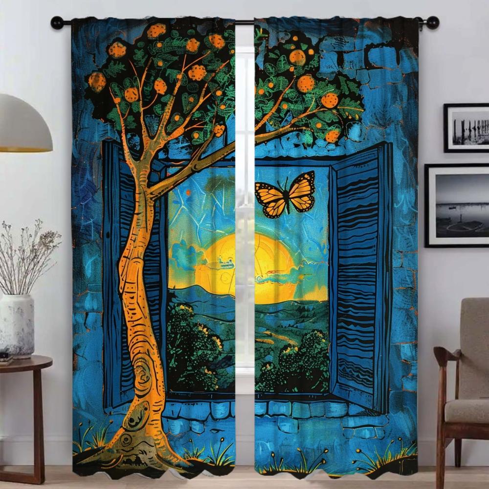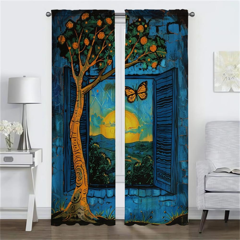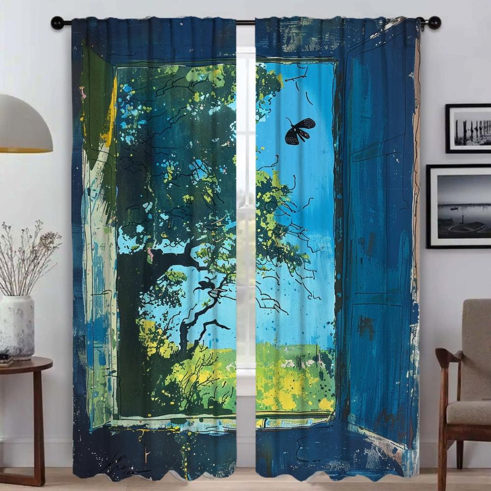 Синие противомоскитные шторы на окна, 2 шт., разделительные шторы для домашнего интерьера, шторы для камеры, занавески для гостиной, украшения на Хэллоуин