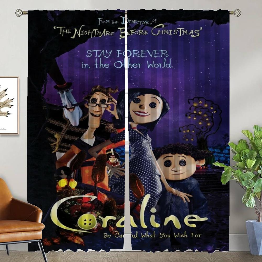 Шторы для детской комнаты Coralines Оконная штора для комнаты 2 панели Хэллоуин украшения Оттенки Домашний интерьер Шторы Раздел