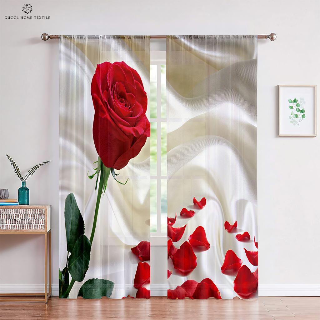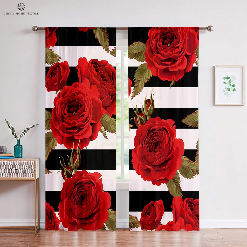 Романтичные шторы с красными розами и цветочным узором, в стиле ретро, для спальни, гостиной, кабинета, кухни, индивидуальное украшение для дома, 2 шт.