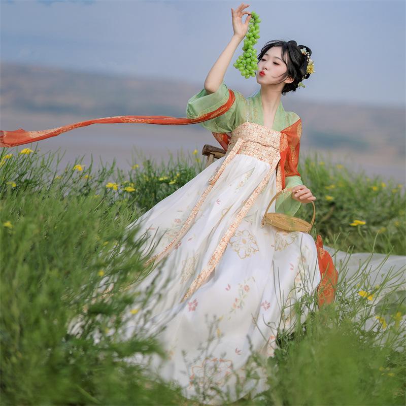 Комплект ханьфу в стиле династии Тан, состоящий из цельного платья до груди для женщин