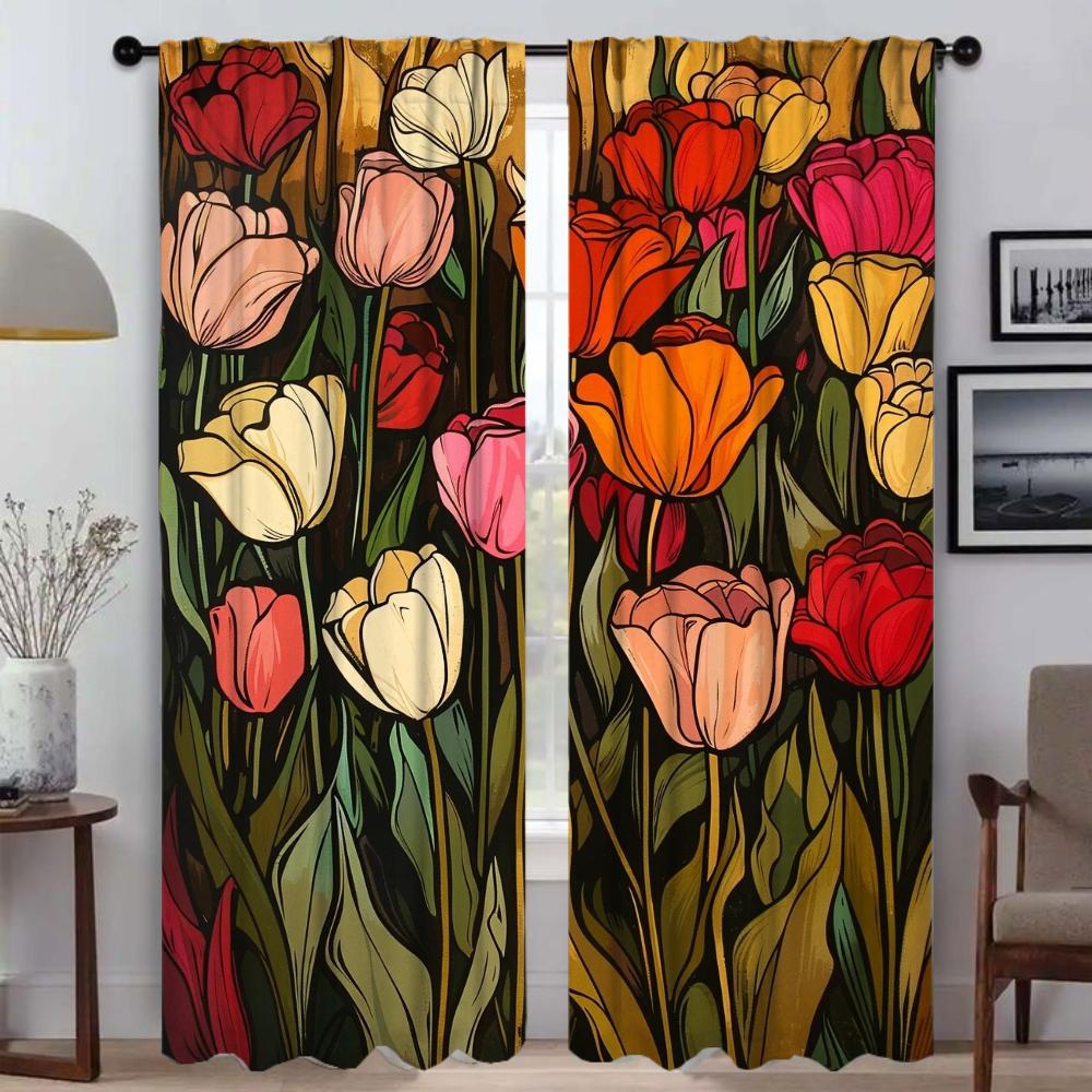 Розы и розовые тюльпаны Шторы для гостиной Шторы Тюль для спальни Шторы для домашнего интерьера Шторы из 2 частей Камера-перегородка