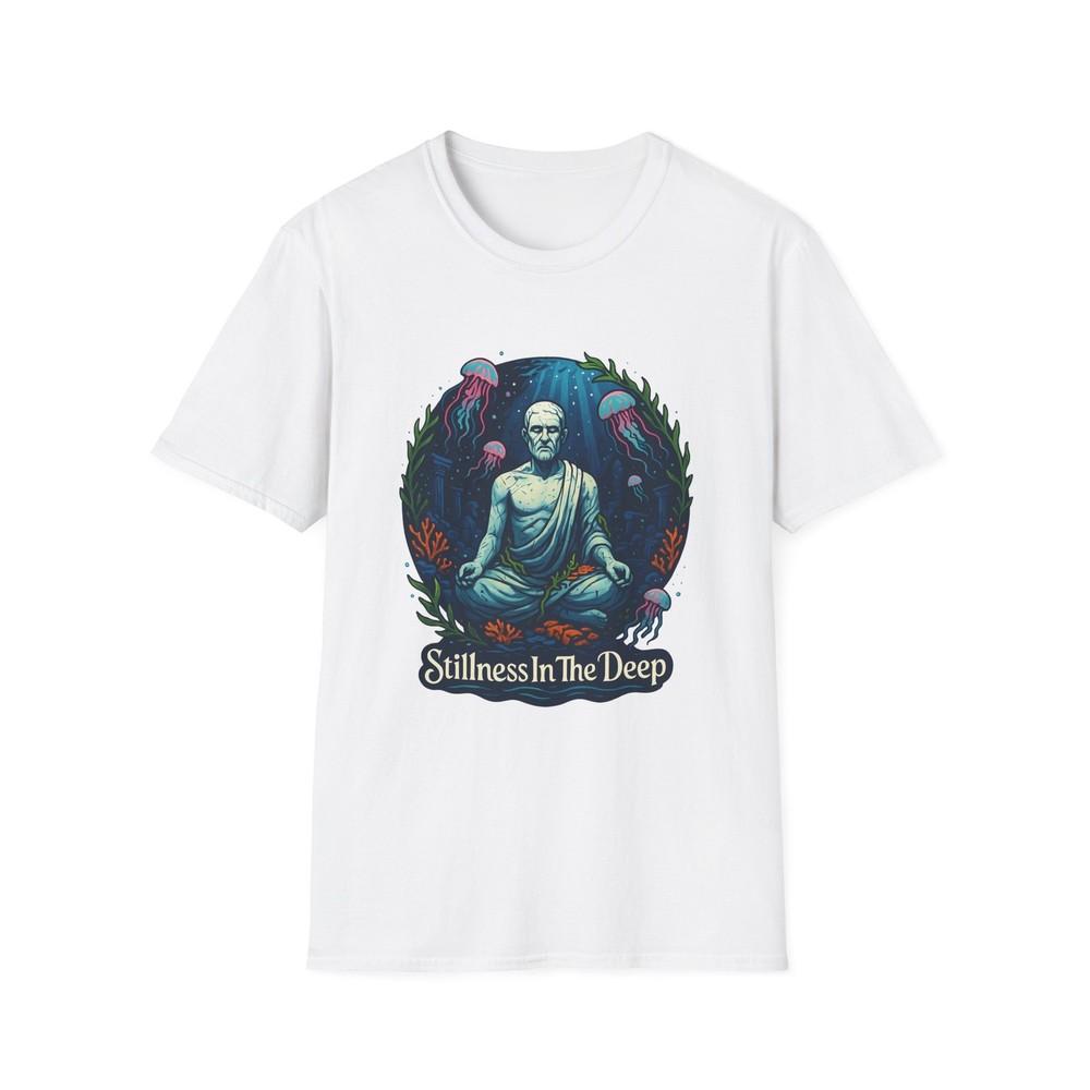 Unisex Softstyle T Shirt Marble Philosopher Statue Sea Meditation Surreal Ocean — купить товар онлайн с бесплатной доставкой по всему миру!