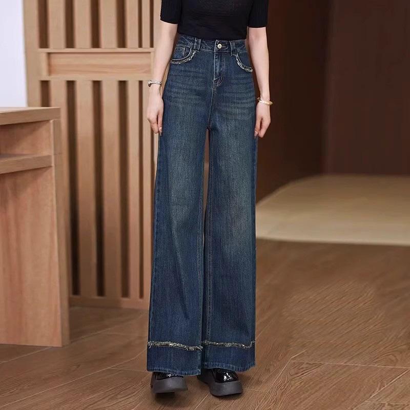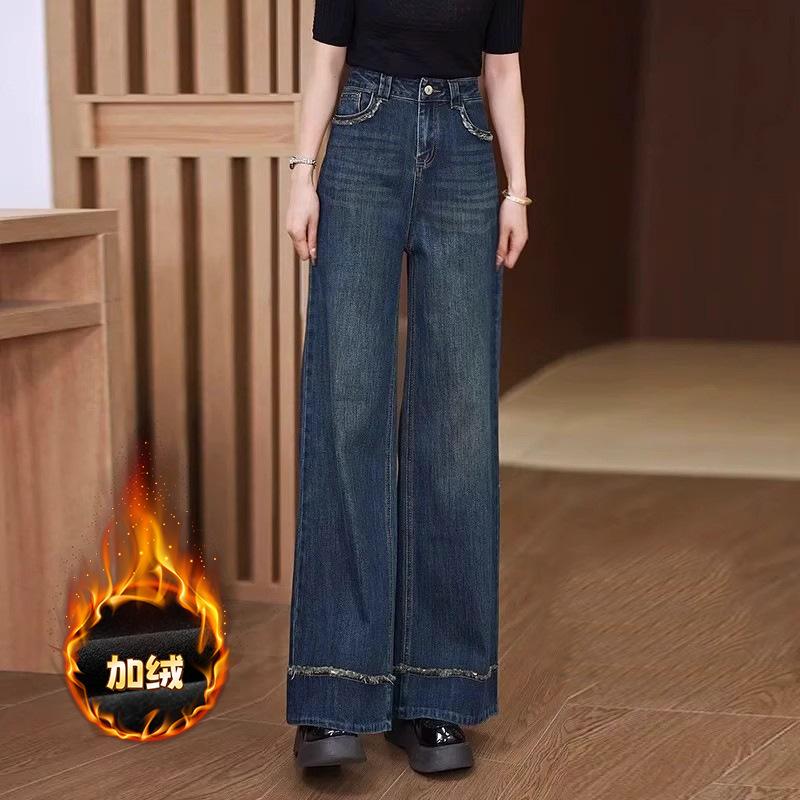 Джинсы широкие для женщин на осень и зиму с высокой посадкой, свободные, прямые штанины