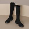 Осень и зима новые женские высокие сапоги европейские и американские нескользящие большого размера на среднем каблуке замшевые женские сапоги квадратные и европейские и А