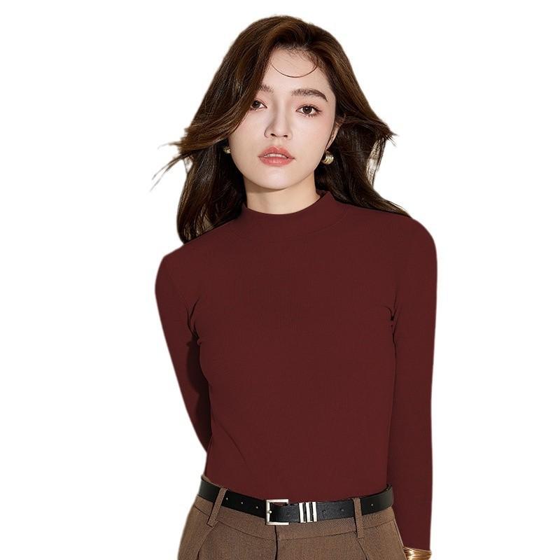 [Базовая рубашка из кашемирового протеина] Базовая рубашка с полуворотником для женщин, осенне-зимнее нижнее белье, стильная и пригодная для ношения на улице, приталенный крой, длинный рукав