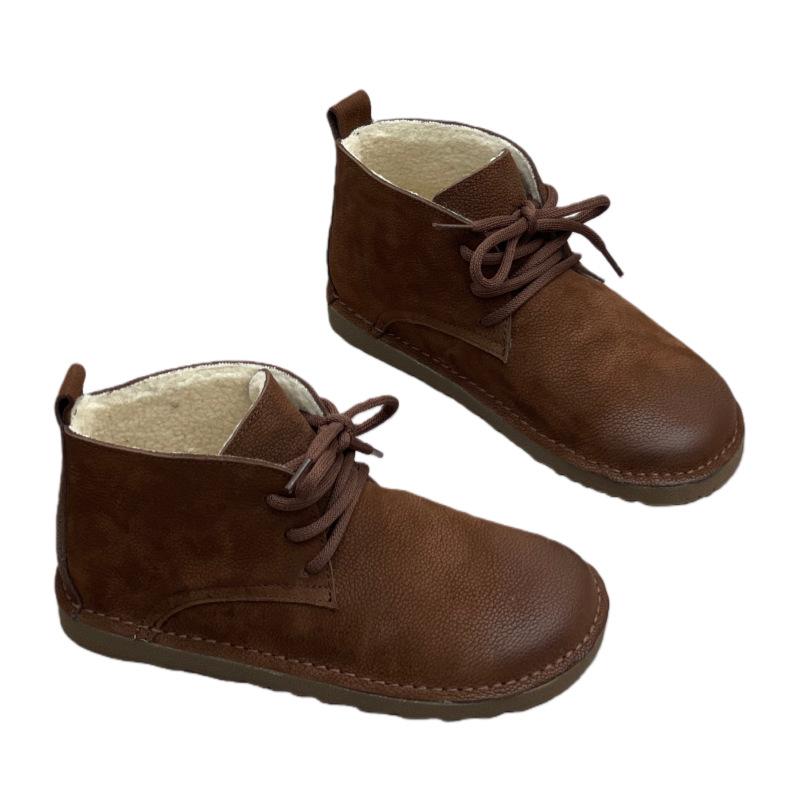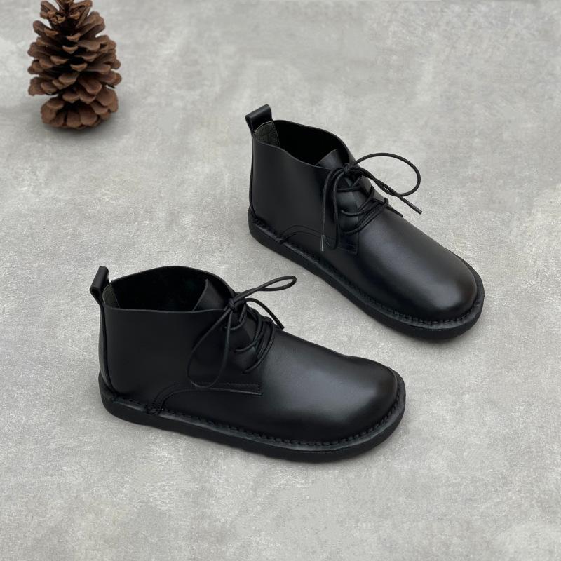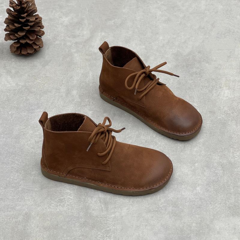 Новые женские ботильоны, ретро шнуровка, круглый носок, плоская мягкая подошва